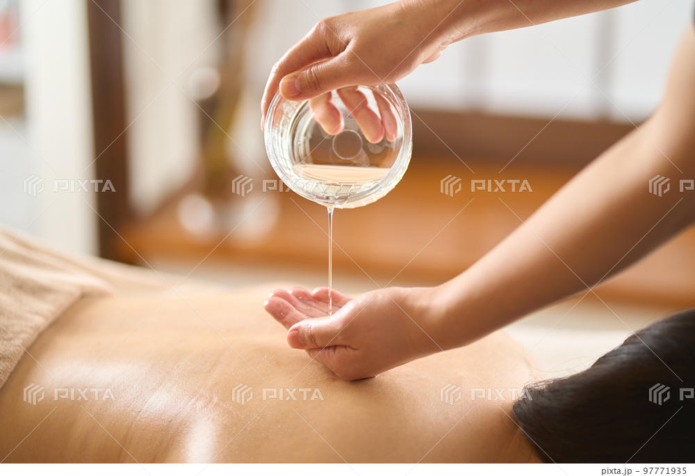 オイルを使用したボディトリートメント。筋肉の緊張をほぐして血行を良くします。